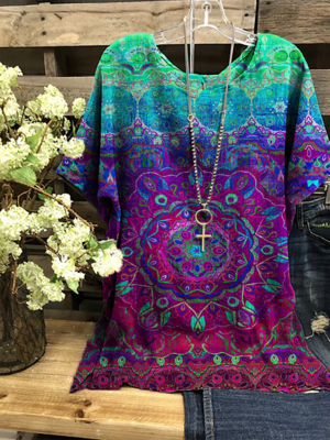 Crew Neck Boho Short Sleeve Shift T-Shirts is fashionable & cheap, come to Noracora to find out about the Clothing