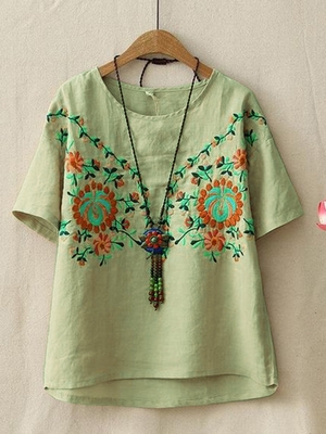 Shop System - Crew Neck Casual Embroidered System online. Discover unique designers fashion at noracora.com.