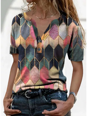 Crew Neck Geometric Casual T-Shirts is fashionable & cheap, come to Noracora to find out about the Clothing
