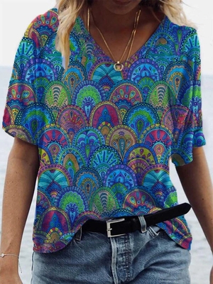 Geometric Printed V Neck Casual T-Shirts is fashionable & cheap, come to Noracora to find out about the Clothing ...