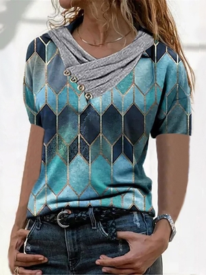 Geometric Short Sleeve Casual T-Shirts is fashionable & cheap, come to Noracora to find out about the Clothing