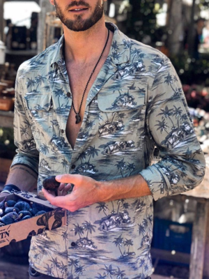 Gray Beach Coconut Tree Shirt Collar Men-Shirts is fashionable & cheap, come to Noracora to find out about the Clothing