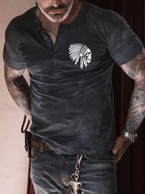 Gray Casual Buttoned Skull Cotton Men-T-Shirts is fashionable & cheap, come to Noracora to find out about the Clothing