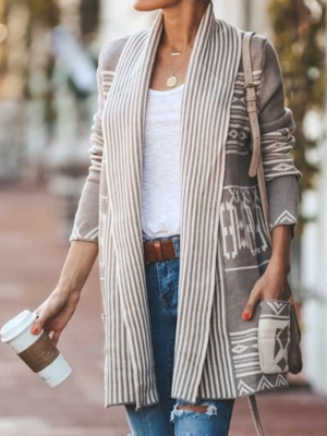 Shop Cardigan - Gray Knitted Long Sleeve Cardigan online. Discover unique designers fashion at noracora.com.