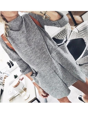 Gray Patchwork Round Neck Knitted Long Sleeve Sweaters is fashionable & cheap, come to Noracora to find out about the Clothing ...