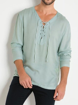 Green Casual Linen V Neck Men-Shirts is fashionable & cheap, come to Noracora to find out about the Clothing