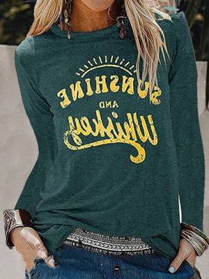 Shop T-shirts - Green Letter Long Sleeve T-Shirts online. Discover unique designers fashion at noracora.com.
