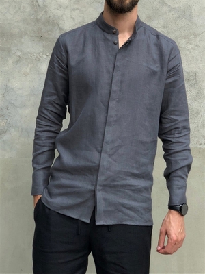 Navy Blue Casual Stand Collar Men-Shirts is fashionable & cheap, come to Noracora to find out about the Clothing