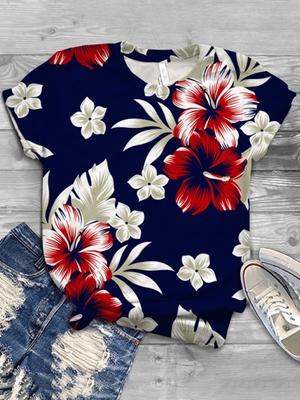Navy Blue Round Neck Short Sleeve T-Shirts is fashionable & cheap, come to Noracora to find out about the Clothing