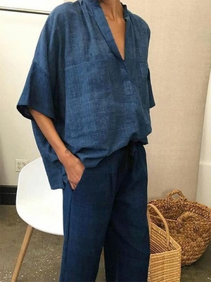 Shop TOPS - noracora 1 Navy Blue Women Tops Casual V Neck Cotton Going Out Tops online. Discover unique designers fashion at noracora.com.