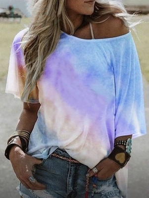 Ombre/tie-Dye Short Sleeve Blouses&shirts is fashionable & cheap, come to Noracora to find out about the Clothing