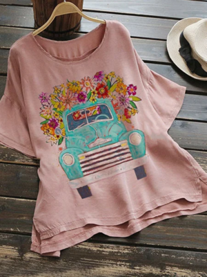 Pink Cotton-Blend Short Sleeve T-Shirts is fashionable & cheap, come to Noracora to find out about the Clothing