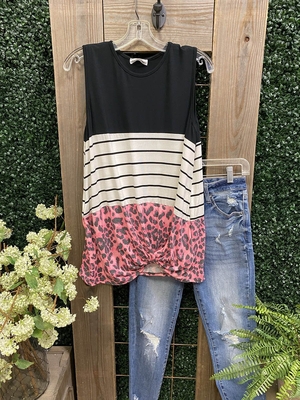 Pink Leopard-Print Stripe Cotton-Blend Leopard Tanks & Camis is fashionable & cheap, come to Noracora to find out about the Clothing