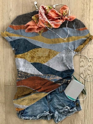Printed Short Sleeve Cotton-Blend Casual T-Shirts is fashionable & cheap, come to Noracora to find out about the Clothing