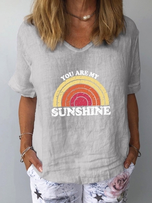 Printed Short Sleeve Geometric Linen Blouses&shirts is fashionable & cheap, come to Noracora to find out about the Clothing