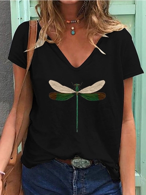 Printed Short Sleeve V Neck Statement T-Shirts is fashionable & cheap, come to Noracora to find out about the Clothing