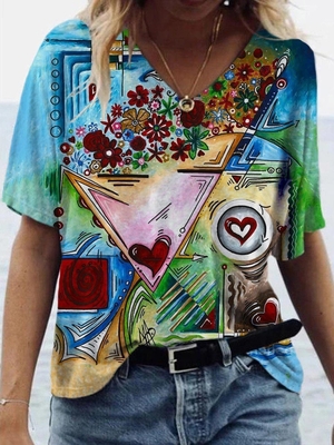 Printed Short Sleeve V Neck T-Shirts is fashionable & cheap, come to Noracora to find out about the Fashion print Clothing