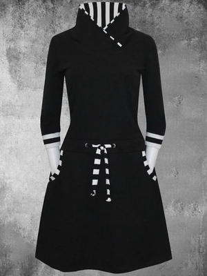 Shop Causal Dresses - Striped Cotton-Blend Long Sleeve Causal Dresses online. Discover unique designers fashion at noracora.com.