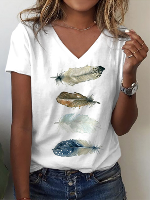 V Neck Casual Loose Feather Pattern T-Shirts is fashionable & cheap, come to Noracora to find out about the Clothing