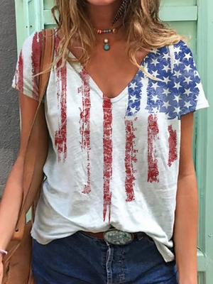 V Neck Cotton-Blend Casual Printed T-Shirts is fashionable & cheap, come to Noracora to find out about the Clothing ...