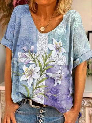 V Neck Holiday Shift Short Sleeve T-Shirts is fashionable & cheap, come to Noracora to find out about the Clothing
