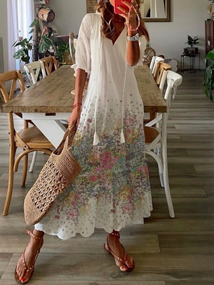 V Neck Polyester Fibre Casual Floral Maxi is fashionable & cheap, come to Noracora to find out about the Clothing
