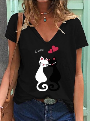 V Neck Short Sleeve Animal T-Shirts - Noracora