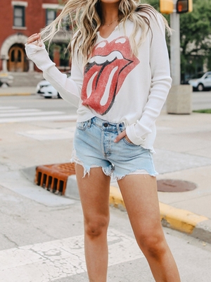 White Abstract Printed V Neck Long Sleeve Causal Tops is fashionable & cheap, come to Noracora to find out about the Clothing