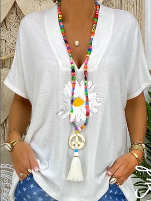 White Cotton-Blend Short Sleeve T-Shirts is fashionable & cheap, come to Noracora to find out about the Clothing