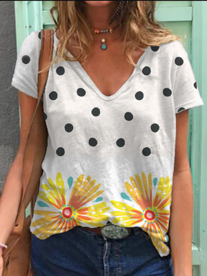 White Floral Casual Cotton V Neck T-Shirts is fashionable & cheap, come to Noracora to find out about the Clothing