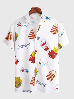 White Printed Geometric Casual Shirt Collar Men-Shirts is fashionable & cheap, come to Noracora to find out about the Clothing