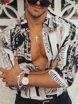White Printed Shirt Collar Casual Men-Shirts is fashionable & cheap, come to Noracora to find out about the Clothing