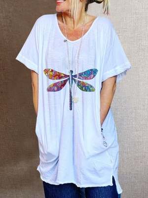White Printed Short Sleeve Animal T-Shirts is fashionable & cheap, come to Noracora to find out about the Clothing