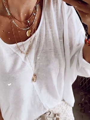 White Solid Round Neck Long Sleeve Cotton Causal Tops is fashionable & cheap, come to Noracora to find out about the Clothing