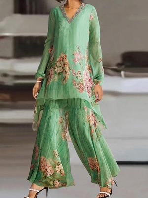 Come to Noracora to buy Two-Piece Sets at a discounted price, SPU: E51ATW2M13F4, Colour: Green, Elasticity: No Elasticity, Edition type: Loose.