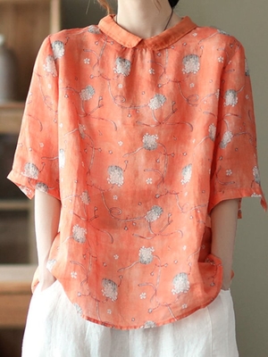 Buy Inexpensive Shirts at Noracora online store, SPU: E5LSH3J29B4, Colour: Green Gray Apricot Orange, Pattern: Floral, Activity: Commuting.