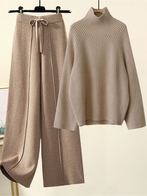 Come to Noracora to buy Two-Piece Sets at a discounted price, SPU: E50TWC8F61D, Color: Color1 Color2 Color3 Color4 Color5 Color6 Color7 Color8 Color9, Pattern:Plain, Neckline:Turtleneck.