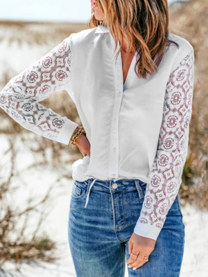 Long Sleeve Shawl Collar Regular Blouses