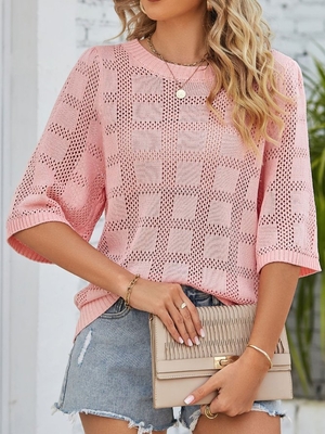 Women Casual Plain Summer Daily Short Sleeve Crew Neck Regular H-Line