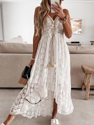 Women Casual Plain Summer Lace No Elasticity Loose Gallus H-Line No