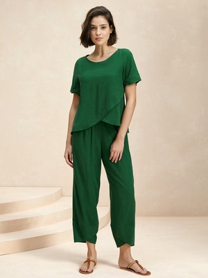 Affordable price buy Two-Piece Sets on Noracora, SPU: E51DTW2L70B0, Colour: Green, Sleeve Length: Short Sleeve, Silhouette:H-Line.