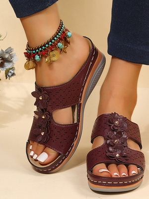 Women Casual Plain Summer Patent Leather Flat Heel Round Toe Pu Slide