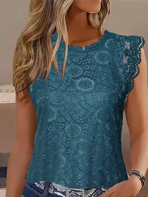 Come to Noracora to buy Tank Tops at a discounted price, SPU: E59TA1I0FE1, Colour: Blue, Pattern: Plain, Decoration/ Process: Lace.
