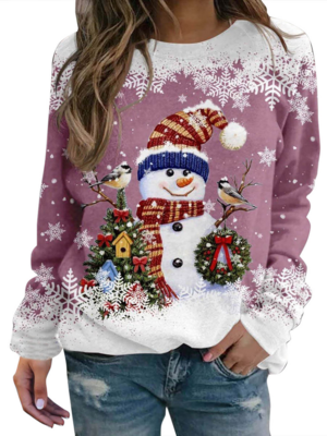 Women Casual Spring/Fall Christmas Jersey Long Sleeve Crew Neck