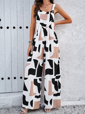 Women Geometric Casual Summer Natural Sleeveless Cold Shoulder Long