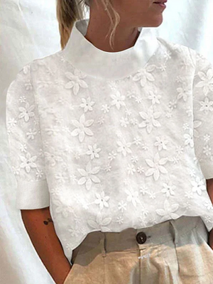 Women Plain Summer Linen Stand Collar Micro-Elasticity Loose Cotton