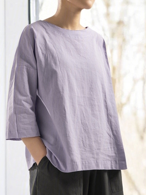 Shop Causal Tops - Women Plus Size Long Sleeve Round Neck Solid Cotton Causal Tops online. Discover unique designers fashion at noracora.com.