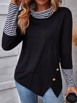Come to Noracora to buy T-shirts at a discounted price, SPU: E51ET-B44B1E, Colour: Black, Style: Casual, Decoration/ Process: Buckle.