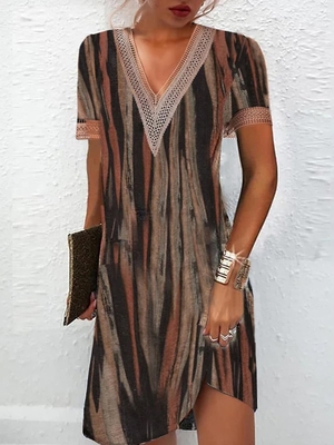 Come to Noracora to buy Dresses at a discounted price, SPU: E5IDR3140B4, Colour: Brown, Pattern: Striped, Style: Casual.