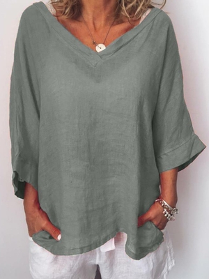 Shop Blouses & Shirts - Women Thin Summer Linen Plus Size Casual Long Sleeve Solid Shirts online. Discover unique designers fashion at noracora.com.